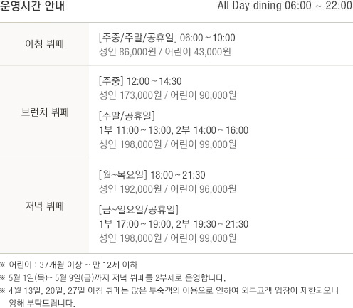 평일 점심 첫 타임(12시)과 주말 브런치 첫 타임(11시 30분)이 가장 인기 있는 시간대입니다. 서울 신라호텔 뷔페를 더욱 특별하게 즐기고 싶다면, 창가 자리를 미리 예약하시는 것을 추천드립니다.