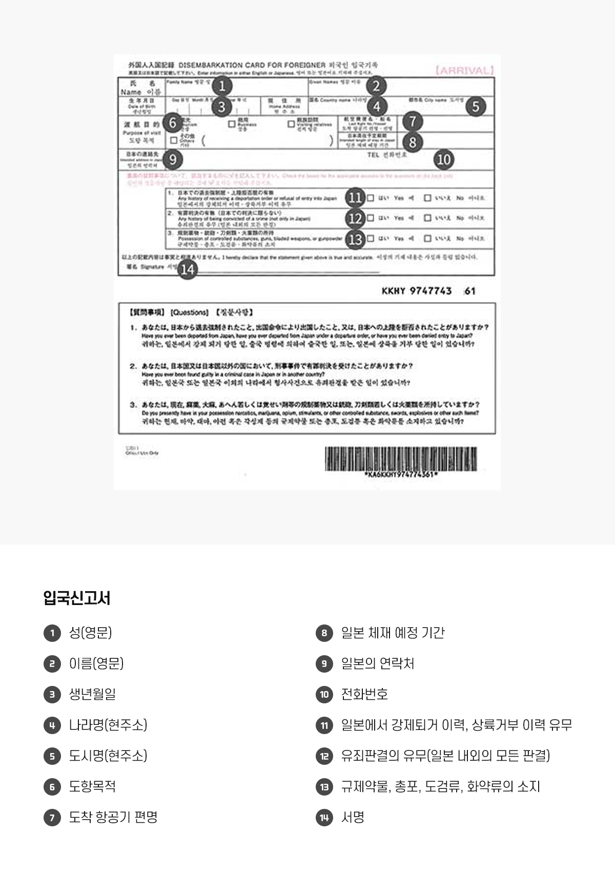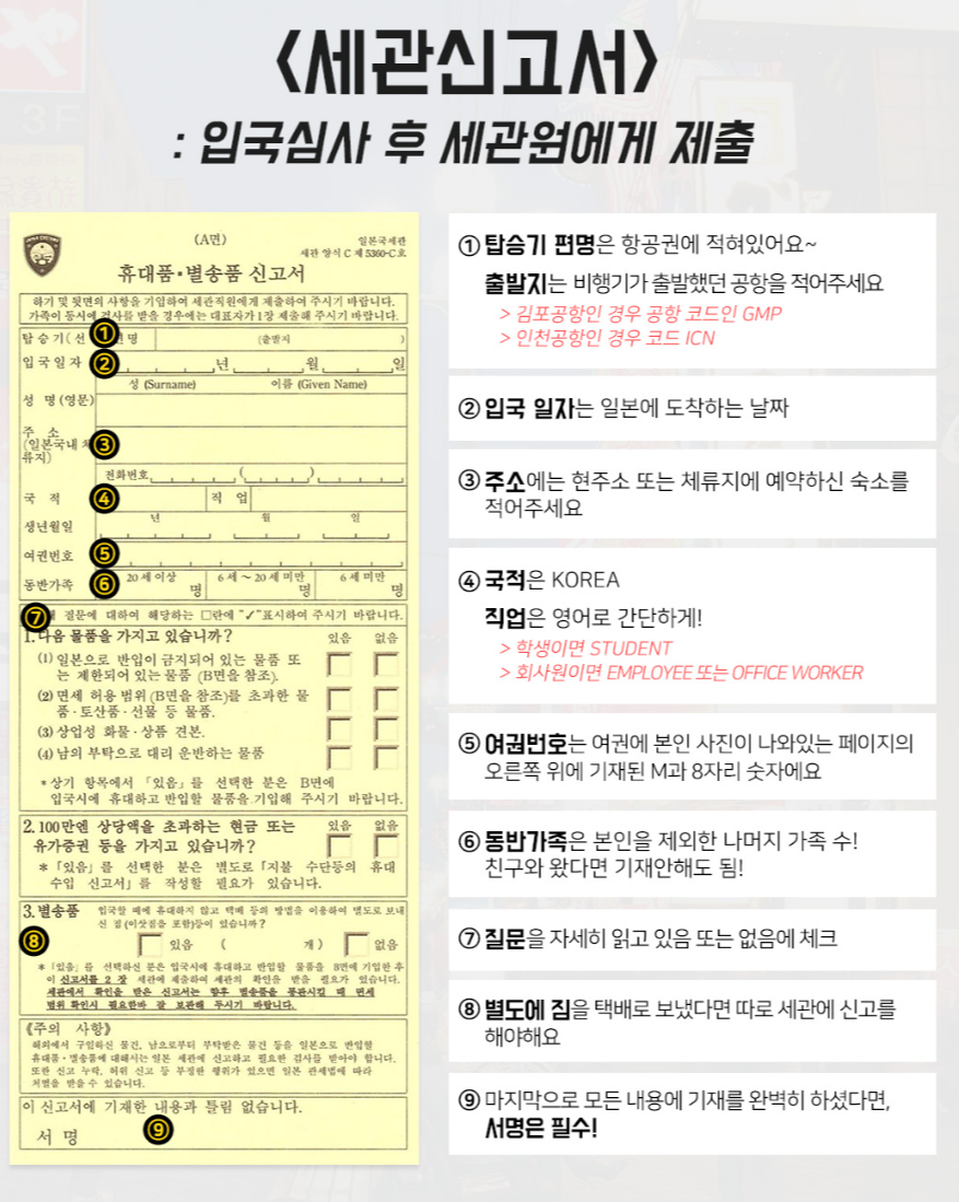 2025년 일본 입국신고서 작성 시 주의사항