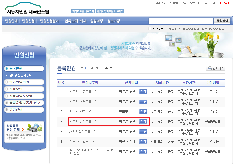 【 자동차 명의이전 관련 주요 사이트 바로가기 】